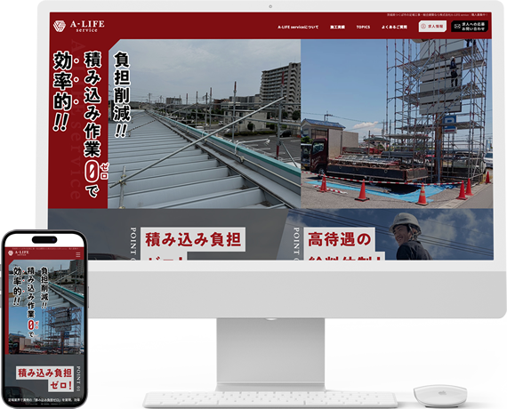 A-LIFE service様の大きな特徴である、業界では珍しい「トラックへの積み込み作業がない」点や「高待遇の給与体制」といった強みをしっかり打ち出すことで他社との差別化を図り、求職者やお客様にとって魅力が伝わるコンテンツ構成にいたしました。